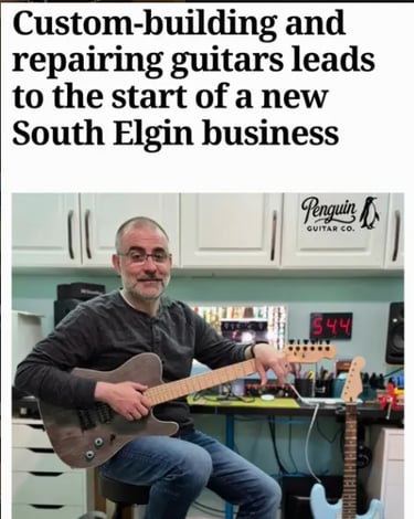Penguin Guitar Co. featured in the Elgin Courier - June 2025